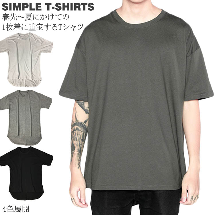 前後で異なる丈感 無地 Tシャツ メンズ Uネック Tシャツ トップス 半袖Tシャツ クールネック ストリート 半袖 Tシャツ ゆったり プルオーバー カットソー 夏男 春 夏 夏服 夏物