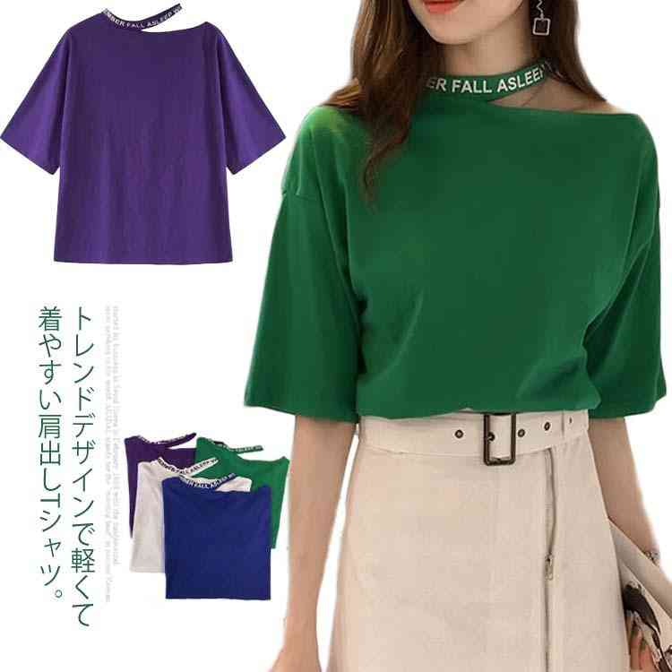 送料無料 Tシャツ 半袖 肩出し オフショルダー トップス セクシー ゆったり 大きいサイズ 夏服 カジュアル レディース 体型カバー ファッション感