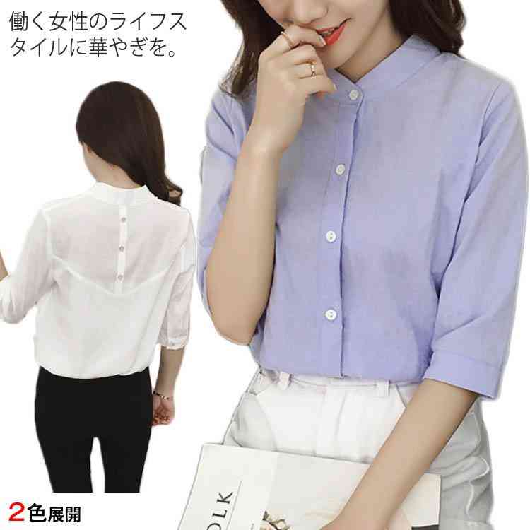 送料無料 シャツ 無地 レディース 2019夏の新作 大サイズ 5分袖 着痩せ トップス ブラウス 夏服 ゆったり お洒落 洗練 シンプル オフィス 上品さ ボタン付き