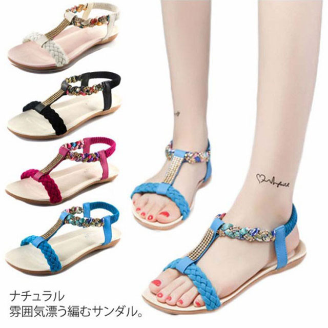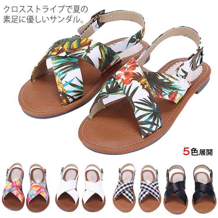 送料無料 サンダル レディース シューズ 歩きやすい 疲れにくい 大きいサイズ べったん シンプル 花柄 可愛い ローヒール ファッション 美脚