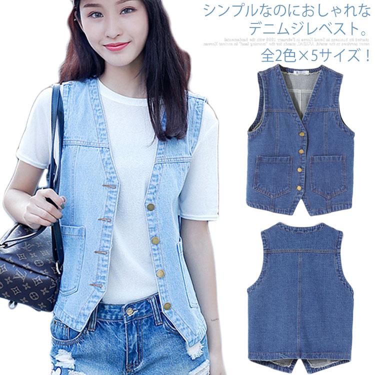 《送料無料》全2色×5サイズ!デニムジャケット デニムジレ デニム ジレ ベスト レディース デニムアウター Vネック ノースリーブ 薄手 羽織り 春 夏 秋 大きサイズ