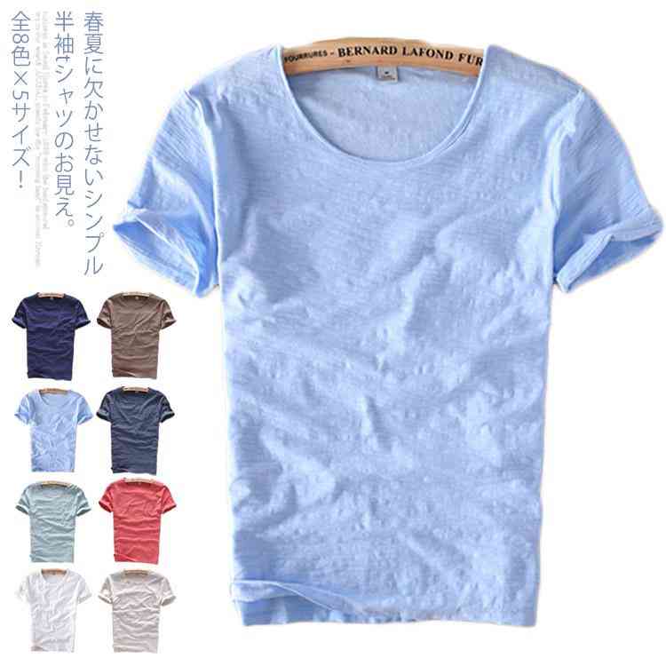 《送料無料》全8色×5サイズ!Tシャツ 無地 メンズ コットン ラウンドネック 半袖Tシャツ カットソー 半袖 夏服 おしゃれ 無地 綿 男性用 トップス シンプル
