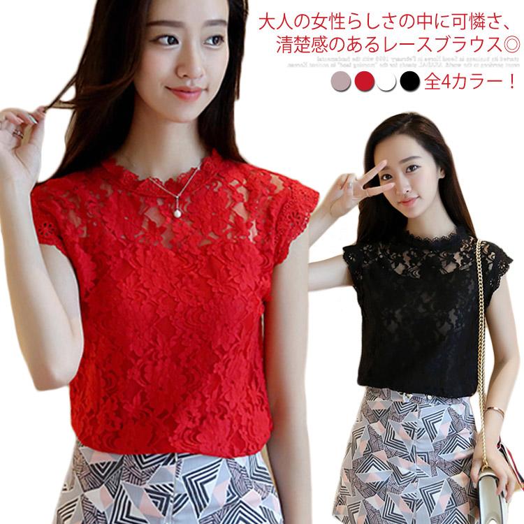 《送料無料》全4色選べる!ハイネック レースブラウス レーストップス ノースリーブ レース プルオーバー トップス ブラウス 総レース 透け 夏 夏服 おしゃれ 女性