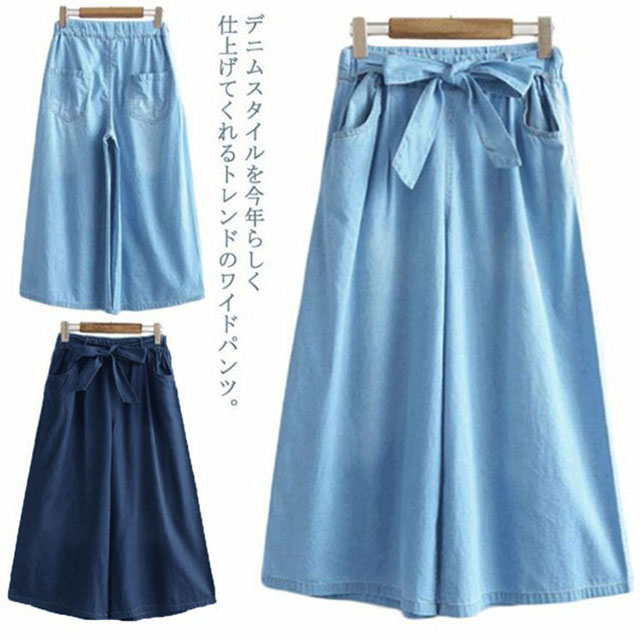 デニムパンツ 7分丈 デニム ガウチョパンツ デニム ワイドパンツ レディース デニム パンツ ジーンズ デニム ストレートパンツ