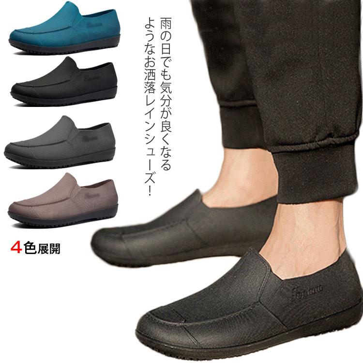 送料無料 レインシューズ メンズ ショート 梅雨対策 雨靴 シューズ 防水 防滑 晴雨兼用 紳士靴 男性用