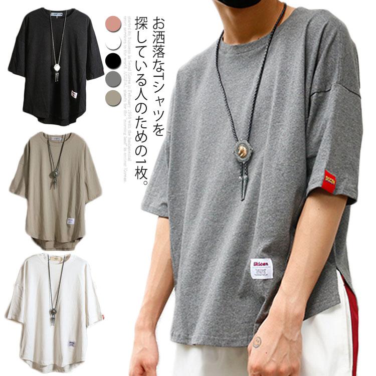送料無料 Tシャツ ドルマン メンズ 5分丈 プルオーバー 全5色 トップス ラウンドネック カジュアルTシャツ ゆったり 大きいサイズ 薄手 シンプル