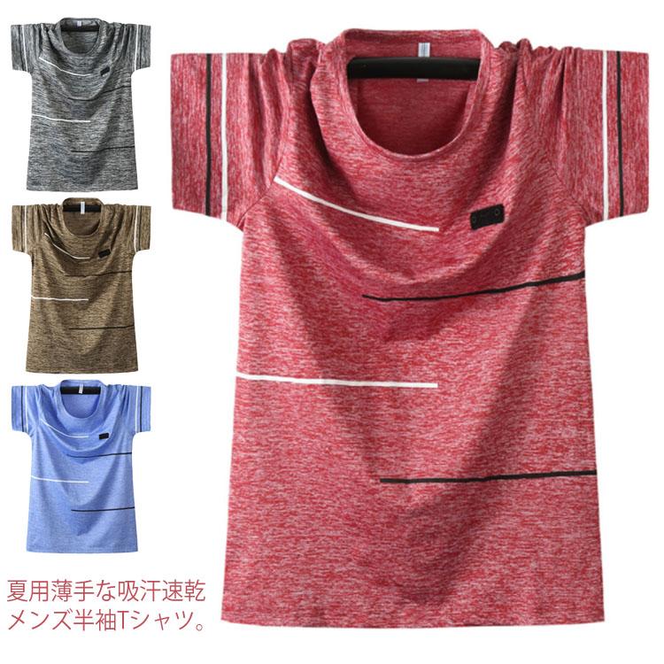 送料無料 Tシャツ 吸汗速乾 メンズ 半袖 トップス 冷感加工 ゆったり 大きいサイズ 薄手 ラウンドネック 全4色 オーバーサイズ
