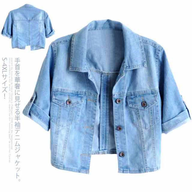 《送料無料》S-4XLサイズ!半袖デニムジャケット レディース デニムポレロ デニムジャケット Gジャン ショート丈 デニム ライトアウター 羽織り 半袖 五分袖 ベーシック 春 夏 秋