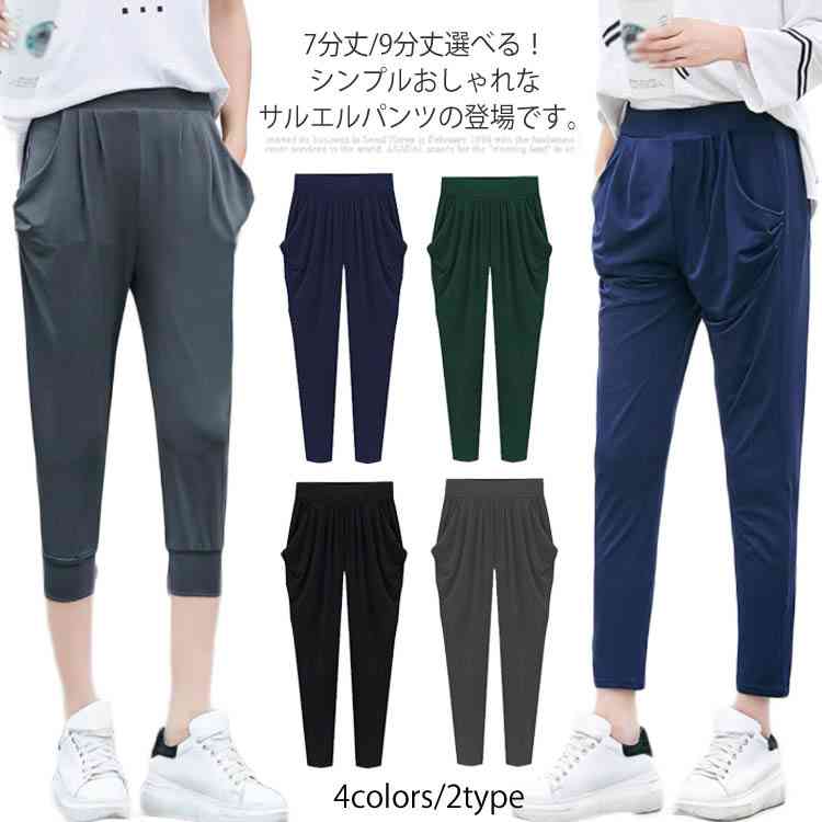 送料無料 【7分丈/9分丈】M-7Lサイズ!サルエルパンツ レディース 春 夏 ボトムス ドレープ パンツ 七分丈 九分丈 リラックスパンツ ウエストゴム シンプル カジュアル 薄手 冷感 大きサイズ 無地