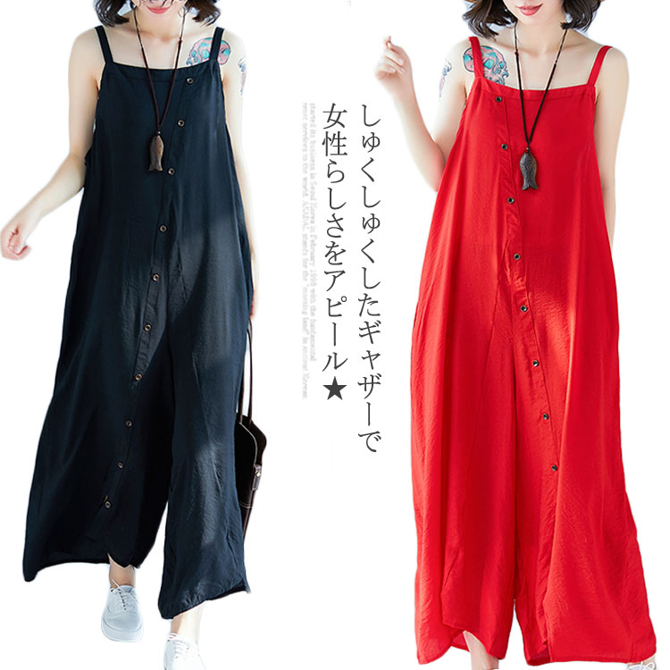 送料無料 サロペット レディース ガウチョパンツ オールインワン ガウチョオールインワン ロングパンツ マキシ丈 ポケット付き ゆったり お洒落 カジュアル リゾート リラックス 重ね着 体型カバー ボトムス 夏新作