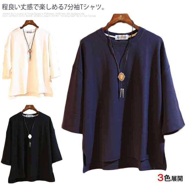 Tシャツ メンズ 7分袖 カットソー トップス ゆったり 大きいサイズ カジュアル シンプル メンズファッション お洒落 無地
