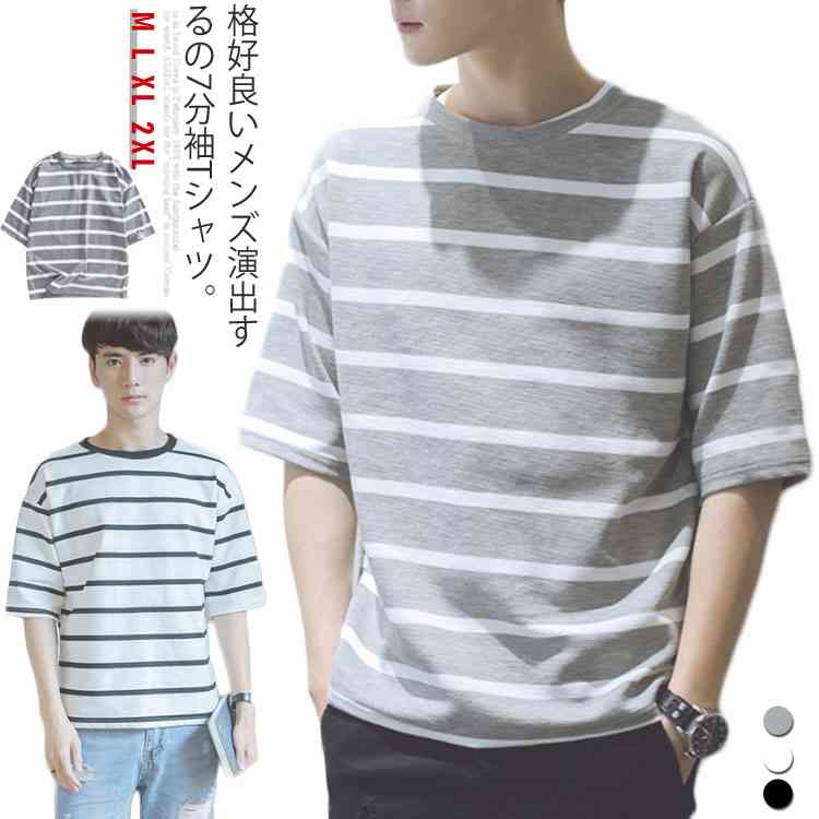 格好良いメンズを演出する!Tシャツ メンズ 7分袖 カットソー トップス ボーダー ゆったり 大きいサイズ カジュアル シンプル メンズファッション お洒落 無地