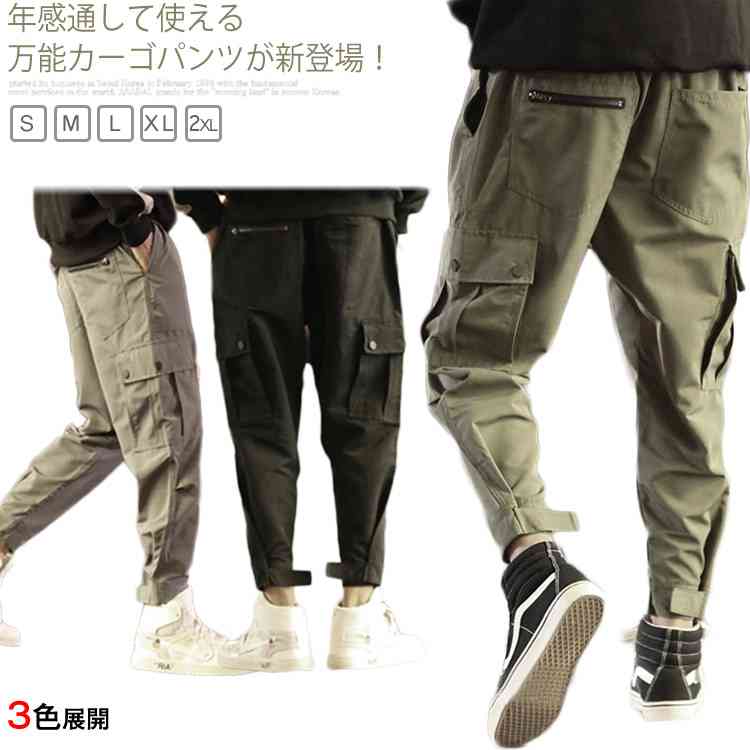 ワークパンツ カーゴパンツ メンズファッション 9分丈 ボトムス ゆったり ハレムパンツ 薄手 大きいサイズ 夏服 メンズ カジュアル 無地