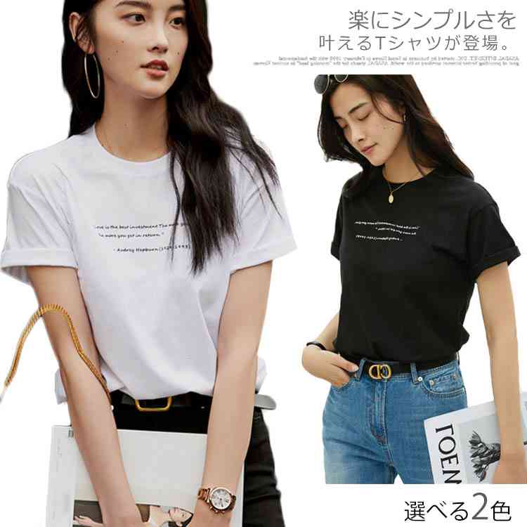 Tシャツ カットソー ラウンドネック トップス レディース ゆったり シンプル 無地 半袖 夏服 コットン 夏物 ホワイト ブラック