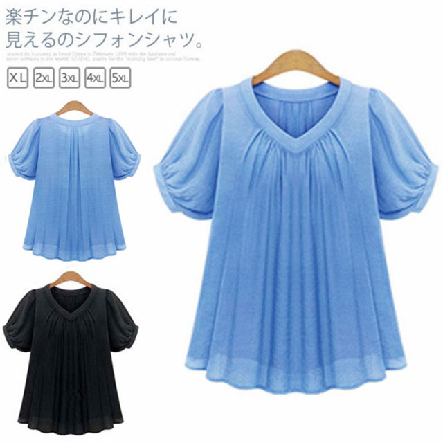 【XL~5XL】送料無料 シフォンシャツ ブラウス トップス レディース 大きいサイズ 体型カバー 着痩せ ゆったり 無地 シンプル 半袖 夏服 OL 通勤服 上品 エレガント