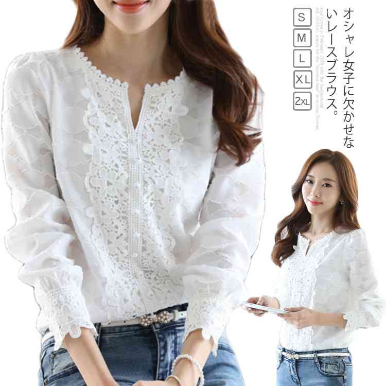 S-XXLサイズ!レースブラウス レース ブラウス トップス 白シャツ レディース シャツブラウス レース 刺繍 おしゃれ 女性 可愛い 春 秋 長袖