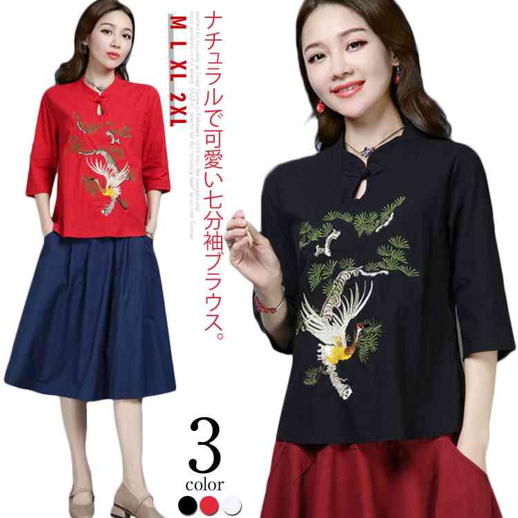 シンプルなのにお洒落。リネンブラウス レディース シャツ ブラウス トップス 七分袖 五分袖 リネントップス 刺繍入り 刺しゅう ショート丈 春 夏