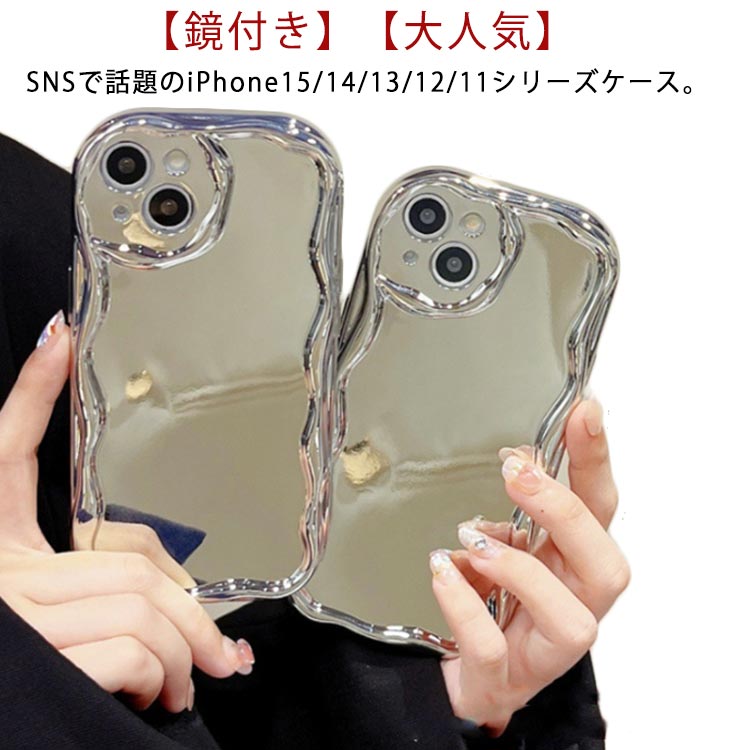 iPhone15 ケース iPhone15Pro ケース ミラー付き 大人かわいい iPhone ケース なみなみ iphone15promax 鏡付き iphone15plus うねうね iphone15 14 13 12 11 カバー シリコン 耐衝撃 韓国 スマホケース ウェーブケース 可愛い おしゃれ SNS 大人気 かわいい
