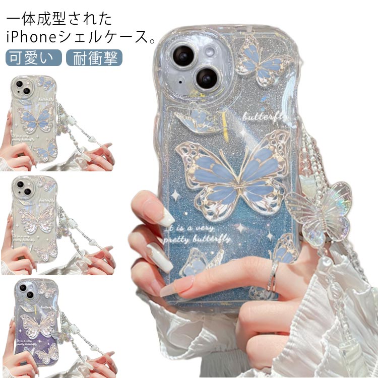 蝶 可愛い iPhone15 ケース 15pro 15plus 15promax iPhone13 iPhone12 iPhone12Pro iPhone12 Pro Max カバー ケース スマホケース iphone14 14proケース 蝶柄 ストラップあり 透明 おしゃれ 女性 彼女 耐衝撃 レンズ保護 送料無料