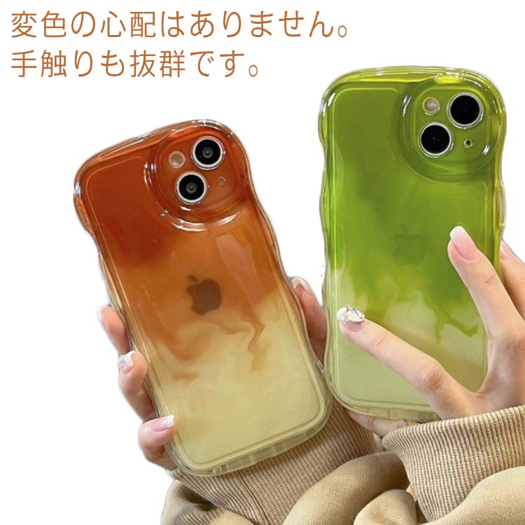 クリア iPhoneケース うねうね なみなみ グラデーション iphone14 plus iphone13pro max iphone12 韓国 シリコン 耐衝撃 かわいい スマホケース ウェーブ クリアケース 透明 可愛い おしゃれ SNS 大人かわいい 女子 緑 送料無料
