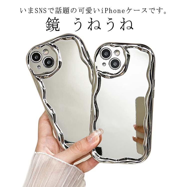 iPhoneケース 鏡 かがみ うねうね なみなみ iphone15 iphone15pro max iphone15 韓国 シリコン 耐衝撃 かわいい スマホケース ウェーブ クリアケース 可愛い おしゃれ SNS 大人かわいい 女子 シルバー 送料無料