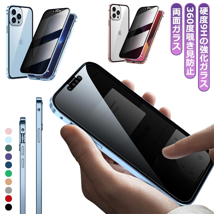 iPhone15 iPhone14 iPhoneケース 覗き見防止 シリーズ 両面ガラス 硬度9H 強化ガラス マグネットバンパー iPhone15Plus iPhone15Pro iPhone14ProMax iPhone13mini iPhone13 iPhone13Pro iPhone13ProMax iPhone12 強化ガラス アルミ バンパー クリア 360度 透明 スマホケース