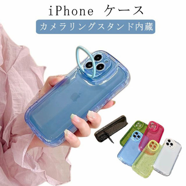 iPhone 15 14 13 12 11 ケース 14Plus 14Pro 14Pro MAX iPhone カバー クリアケース スタンド付き 落下保護 カメラリングスタンド内蔵 傷防止 アクリルバック クリア 透明 ケース カバー 送料無料