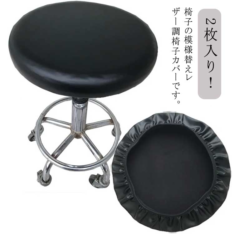 2枚入り スツールカバー PUレザー 丸椅子カバー 丸椅子 カバー スツール カバー 防水 伸縮 回転 椅子 昇降式 カバー イス チェアカバー 座面カバー ゴム付き ズレない キズ防止 汚れ防止 ブラッ