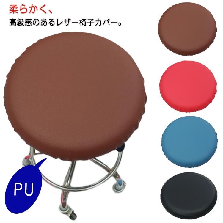 スポンジ入り&厚めタイプ!合皮 椅子 PU 北欧 回転椅子 丸型 レザー調 カバー フィットタイプ 伸縮性 いす用 チェアカバー ゴム 防水 イス保護 ズレない 汚れ防止 キズ防止 無地 シンプル 高級感 座面カバー 送料無料