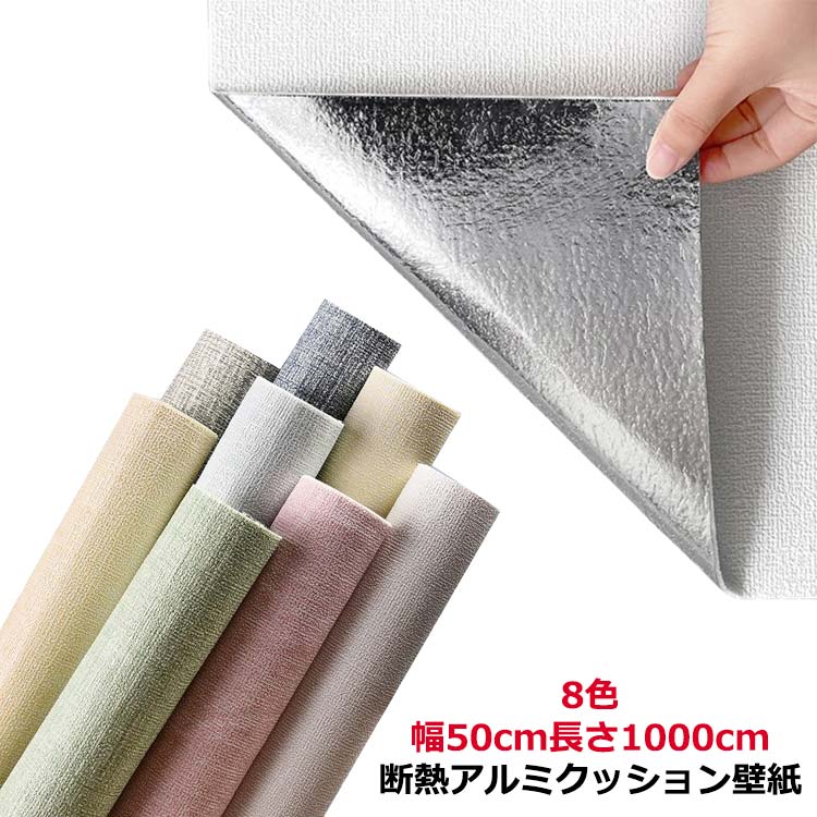 壁紙 補修 シール 10m 壁紙シール 厚手 2mm 防水 断熱 結露防止 カビ防止 吸音 8色 幅50cm×長さ1000cm 厚み2mm のり付き 裏面アルミフィルム クッション壁紙 リビング ダイニング 玄関 和室 送料無料