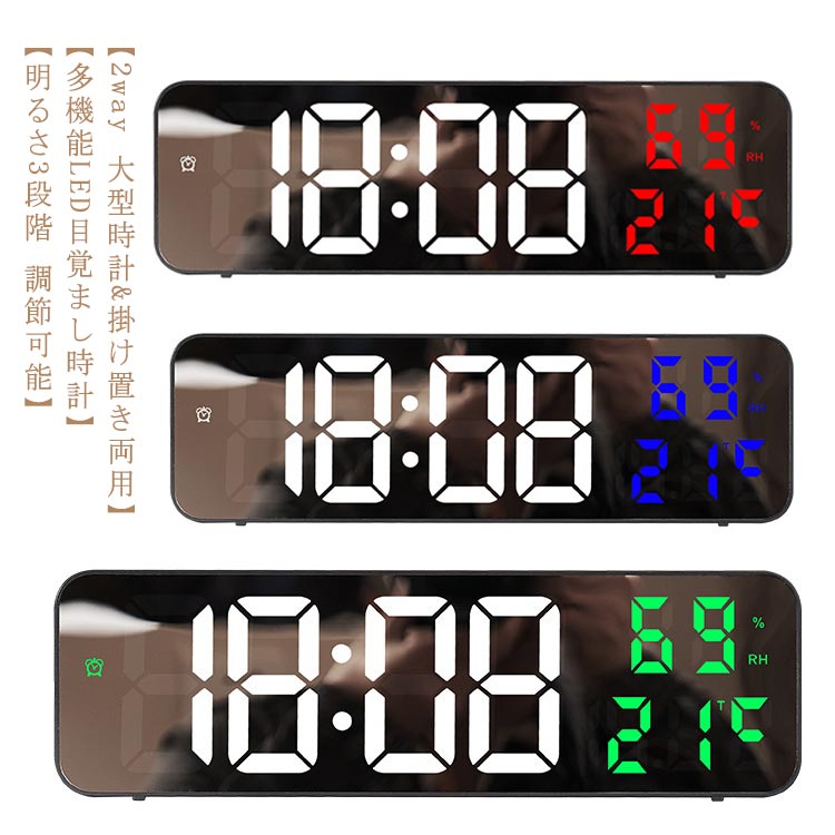 壁掛け時計 デジタル LED電子時計 2way 置時計 壁掛け時計 デジタル時計 壁掛け 大型 led 壁掛け時計 置き時計 clock 目覚まし時計 明るさ調整 USB電源 タイマー アラーム スヌーズ機能 年/月/日 温度/日期切替表示 12H/24H切替 大きい時計