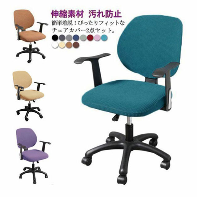 2点セット オフィスチェアカバー 椅子カバー オフィス用 事務椅子 チェアカバー 伸縮素材 座面と背もたれ 洗濯可能 昇降式椅子座面カバー 着脱簡単 セパレート 無地 おしゃれ 破れ隠し 汚れ防止 送料無料
