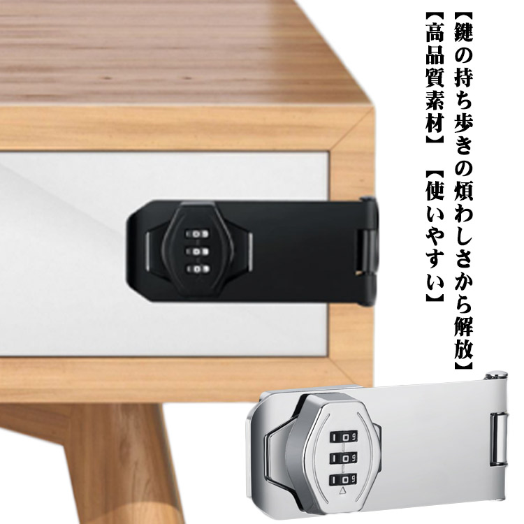 穴あけ不要 鍵 ドアロック 部屋鍵後付け 3桁ダイヤル式 鍵 落とし防止 引き戸 鍵 後付け 鍵 部屋 引き出し 鍵キャビネット ロッカー ポスト 収納ボックス 書庫 家具 扉 錠 ロック 防犯 耐震ラッチ 亜鉛合金製 金具 防錆 耐久性 かぎ 補助錠 玄関 窓 鍵 南京錠