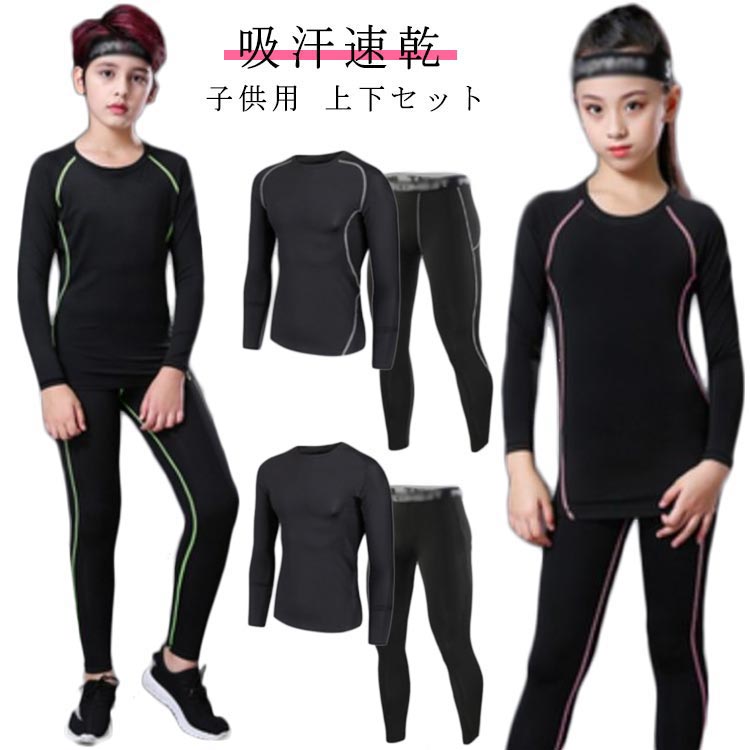 コンプレッションウェア セットアップ キッズ スポーツ アンダーウェア 上下セット ジュニア サッカー 運動着 ストレッチ 吸汗 速乾 男の子 女の子 防寒 スポーツ インナーシャツ 長袖 サッカー 野球 ラグビー テニス バスケ ランニング 春 秋 冬