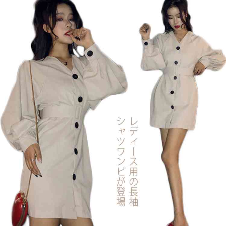 ロングシャツ 長袖 シャツワンピース レディース シャツワンピ 膝下 ロング丈 ワンピース 長袖 韓国 ファッション 上品 エレガント フェ