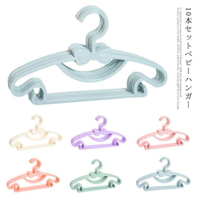 ハンガー すべらない おしゃれ 新生児 赤ちゃん パステル プラスチック ベビーハンガー 10本セット 肩紐 蝶ネクタイ 可愛い ベビー服 子供服 洗濯 ピンク ベージュ ライトブルー オレンジ グリーン ラベンダー