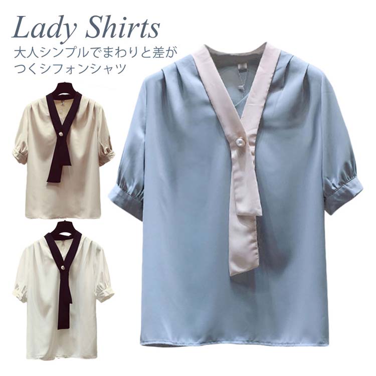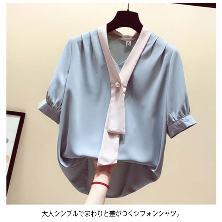シフォン シャツ シフォンブラウス 長袖 シャツ ブラウス レディース Vネック シャツ ブラウス シフォンブラウス OL 通勤 フェミニン オフィス