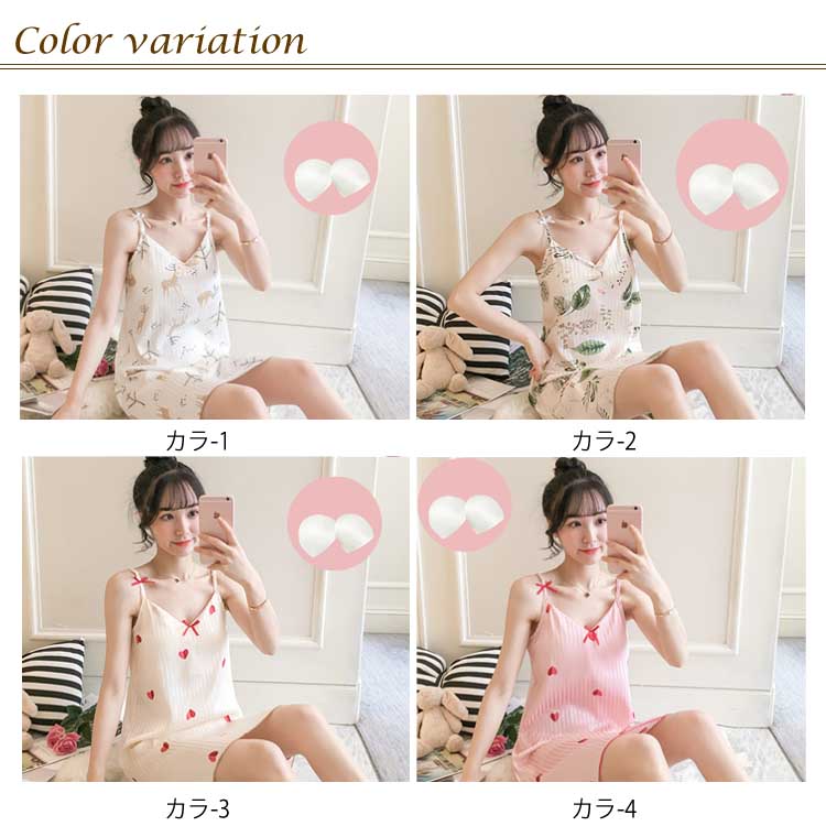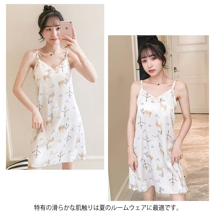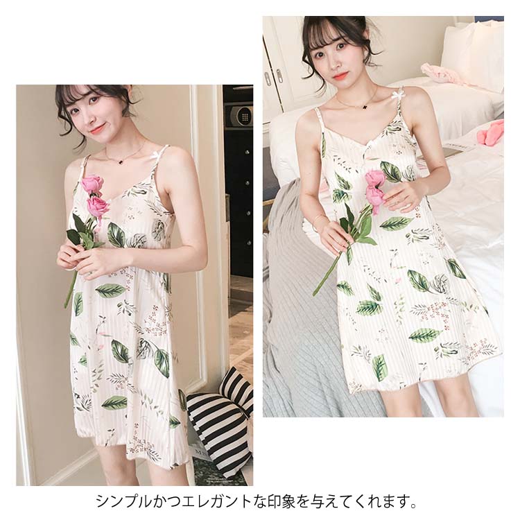 ルームウェア キャミソール ワンピース ナイトウェア レディース 部屋着 膝丈 カップ付き Vネック 大人可愛い ホームウェア パジャマ