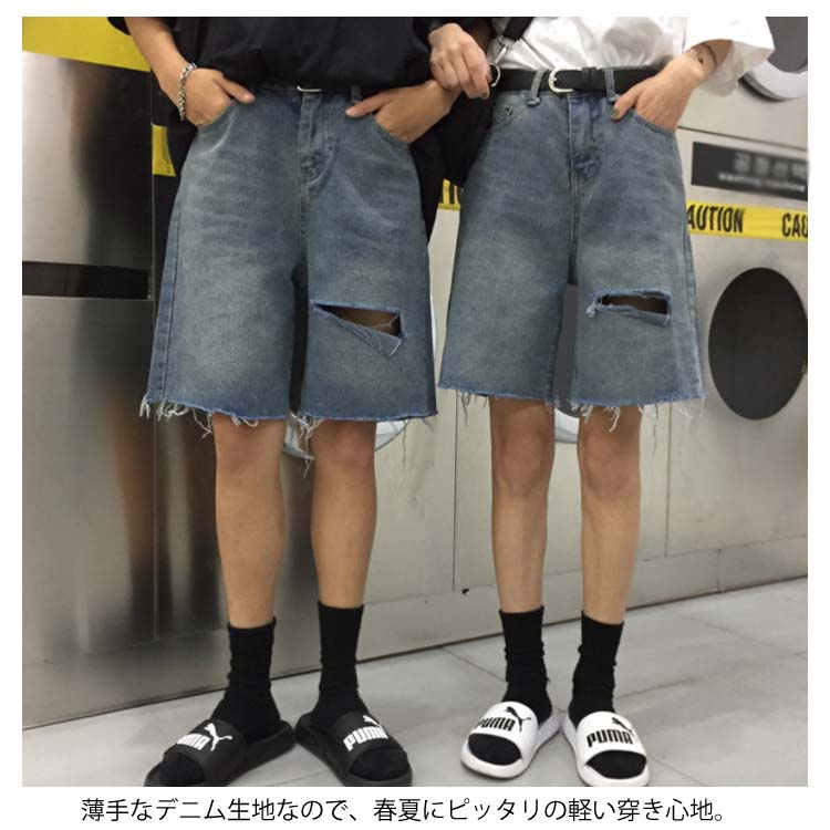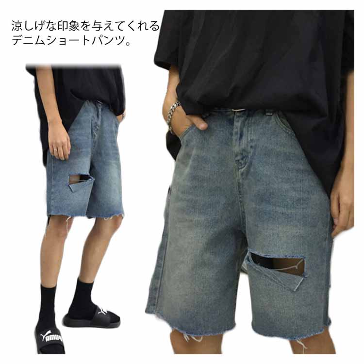 送料無料 ショートパンツ メンズ デニムパンツ ショート丈 ハーフパンツ ワイドパンツ 夏物 ジーンズ 無地 ストレッチ ファッション感