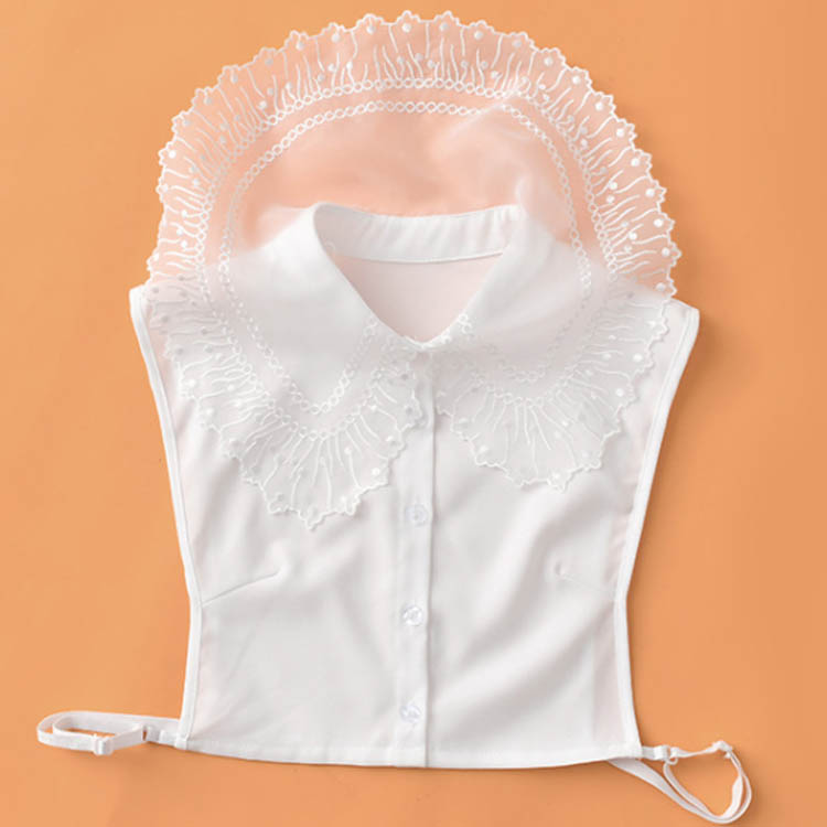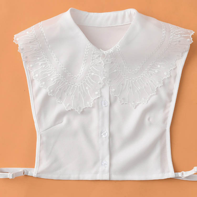 送料無料 大きいサイズ 付け襟 ビッグカラー 刺繍 レディース つけ襟 大きい 付け襟 花柄レース シャツ レディース トップス ビジュー付き ゴムバンド 重ね着 レイヤード シャツカラー ブラウスカラー ズレにくい こなれ感 キレイめ お洒落 可愛い