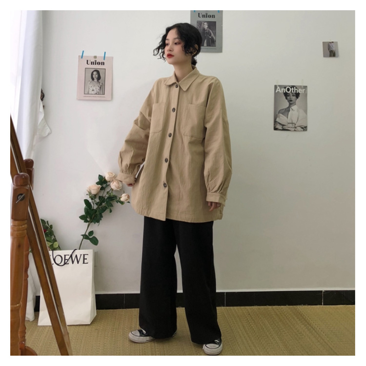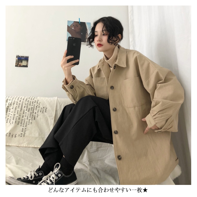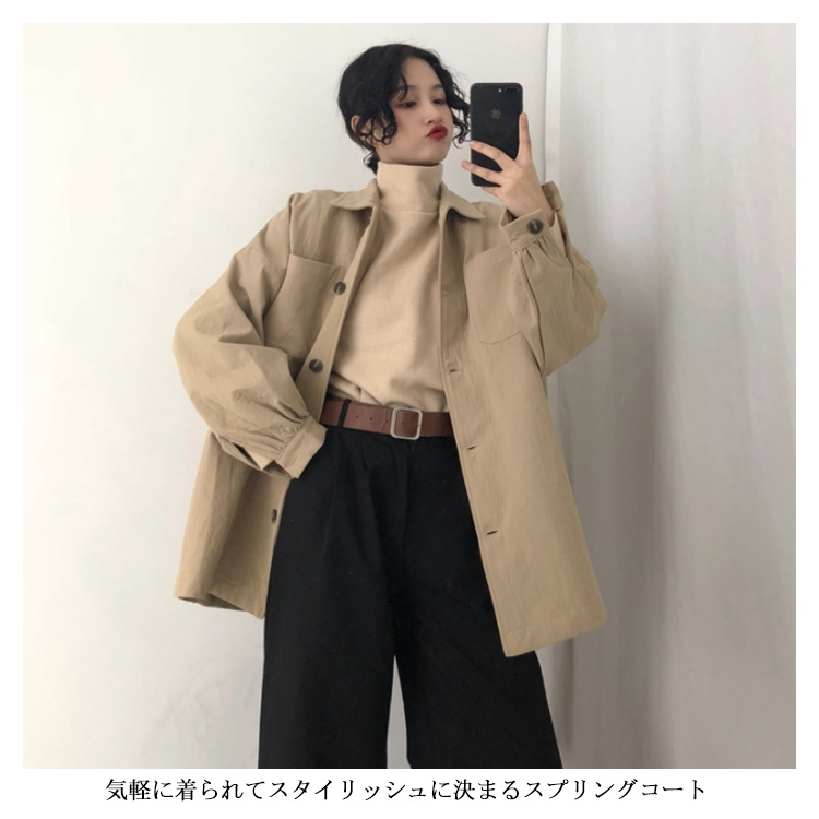 送料無料 スプリングコート レディース ライトアウター カジュアルコート 秋物 長袖コート 羽織物 ルーズ ボタン付き 体型カバー レトロ 通勤 ゆったり シンプル お洒落 シック 新作