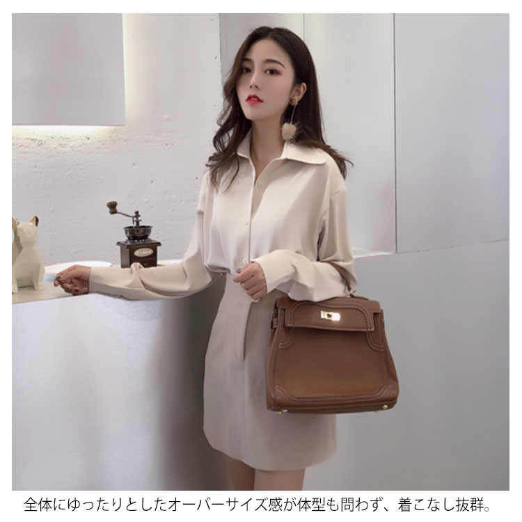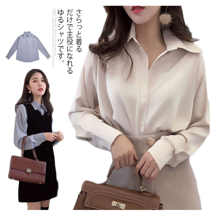 《送料無料》大人抜け感抜群!ロングスリーブシャツ レディース シャツ ブラウス 長袖シャツ カジュアルシャツ ロングスリーブ ゆったり シンプル 無地 春 秋