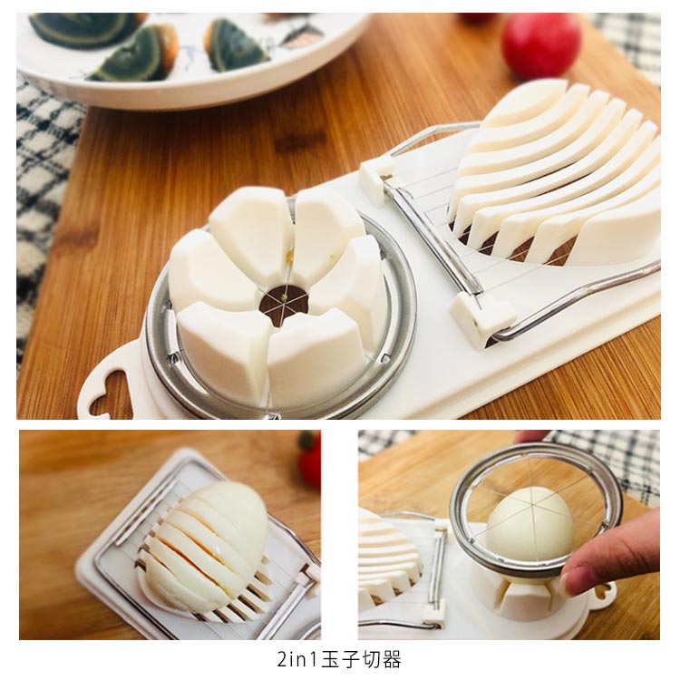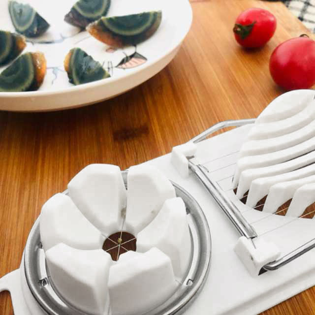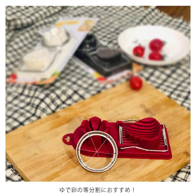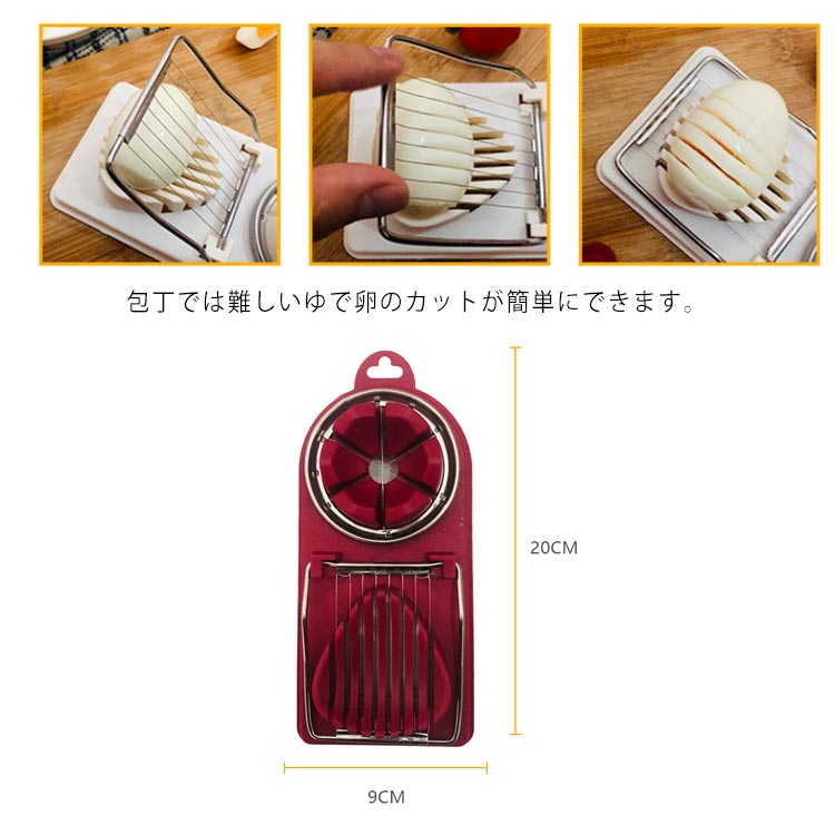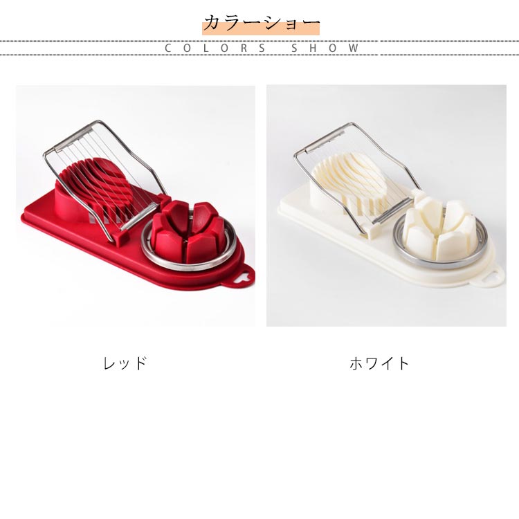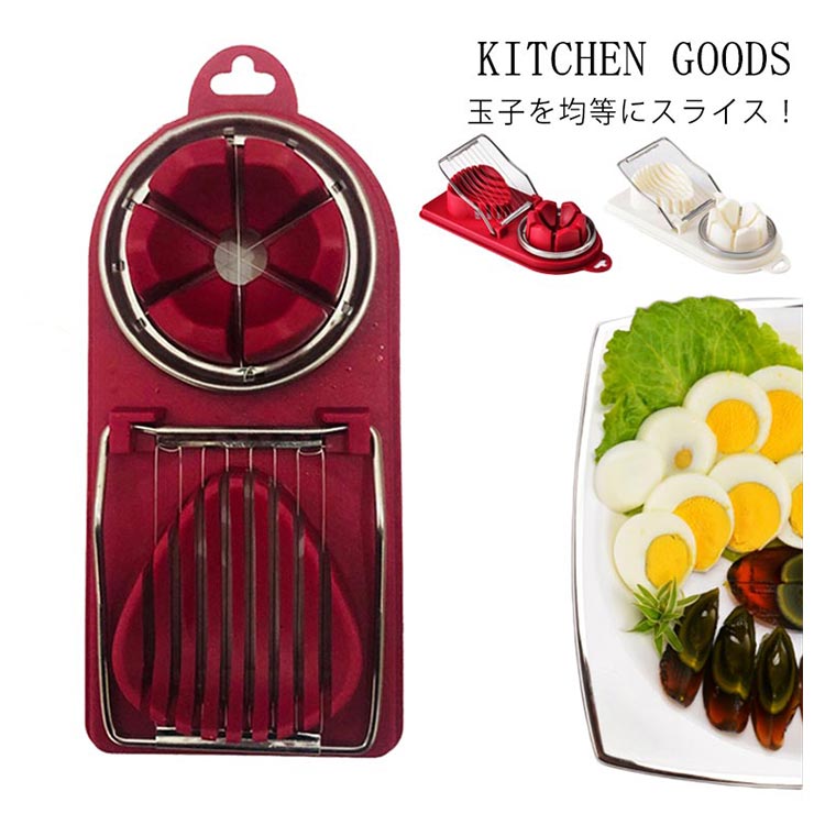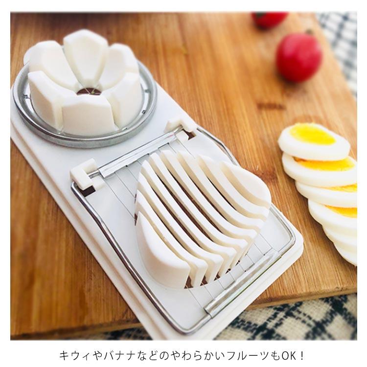 | ゆで卵料理の定番!可愛い玉子切器のご紹介です。 玉子を均等にスライス! サンドイッチ作りやサラダの盛り付けに。 キウィやバナナなどのやわらかいフルーツもOK! | |