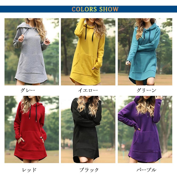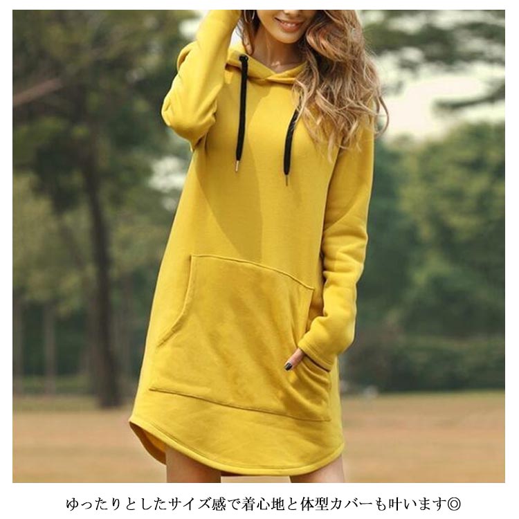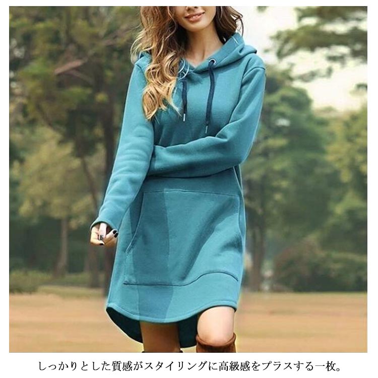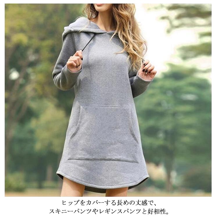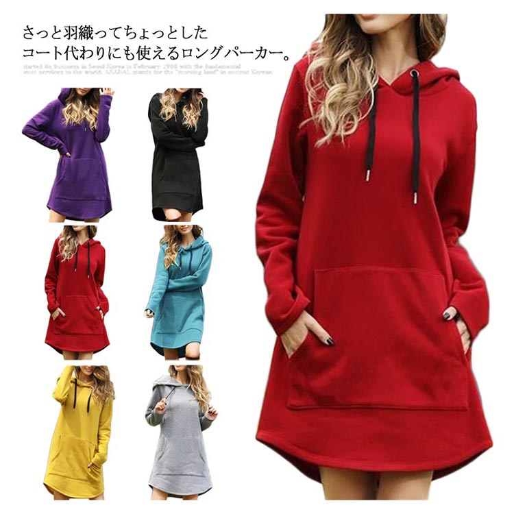 パーカー レディース ロング丈 長袖 フード付き プルオーバー 体型カバー ゆったり 無地 ファション カジュアル トップス 秋冬物 お洒落
