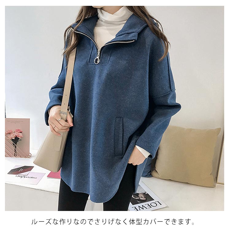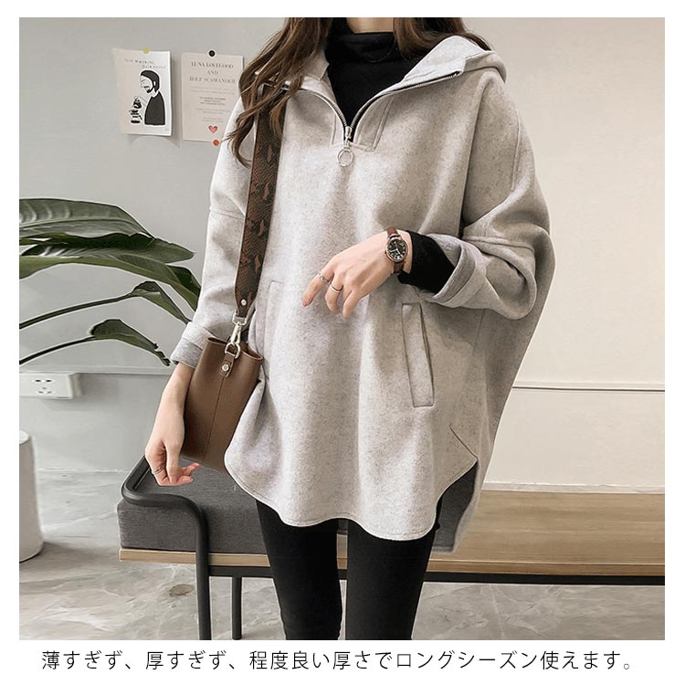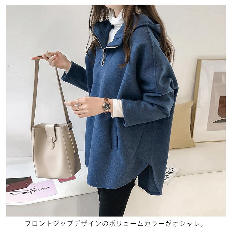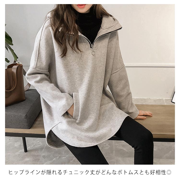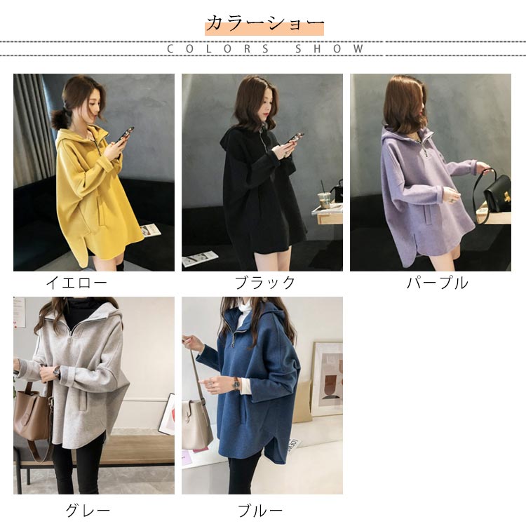 | 全5色×5サイズ!今期にぴったりのフード付きトップス。 フロントジップデザインのボリュームカラーがオシャレ。 ルーズな作りなのでさりげなく体型カバーできます。 薄すぎず、厚すぎず、程度良い厚さでロングシーズン使えます。 ヒップラインが隠れるチュニック丈がどんなボトムスとも好相性◎ | |