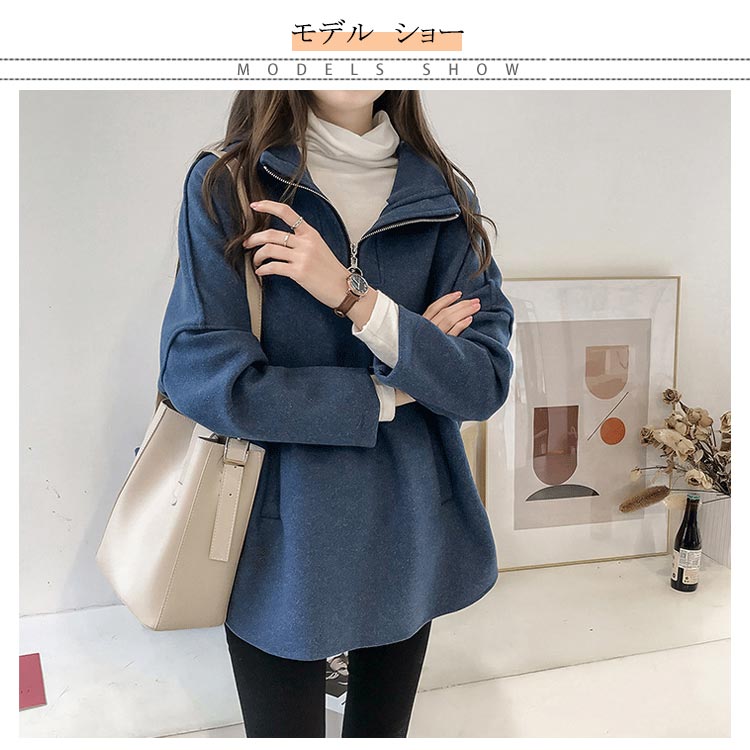 全5色×5サイズ!ジップ襟パーカー レディース パーカー プルオーバーパーカー フード付き ゆったり おしゃれ チュニック アシメトリー シンプル 無地 カジュアル レイヤード