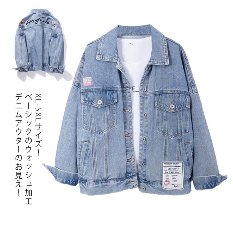 | XL-5XLサイズ!ベーシックのウォッシュ加工デニムアウターのお見え! オーバーサイズの身頃とドロップショルダーで自然なぬけ感コーディネートになります。 バック部分はさりげない刺繍入りもアクセントに ステッチや色落ち、ウォッシュ加工など本物のデニムに負けないこだわりポイント満載。 コーディネート次第でカジュアルにも女らしくも着こなせる。 春秋の大人ライトアウターとして、是非ワードローブに追加しておきたい | |