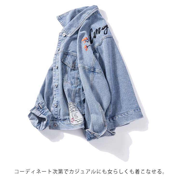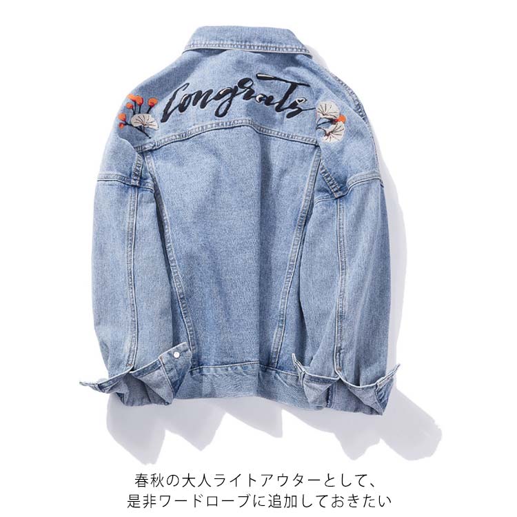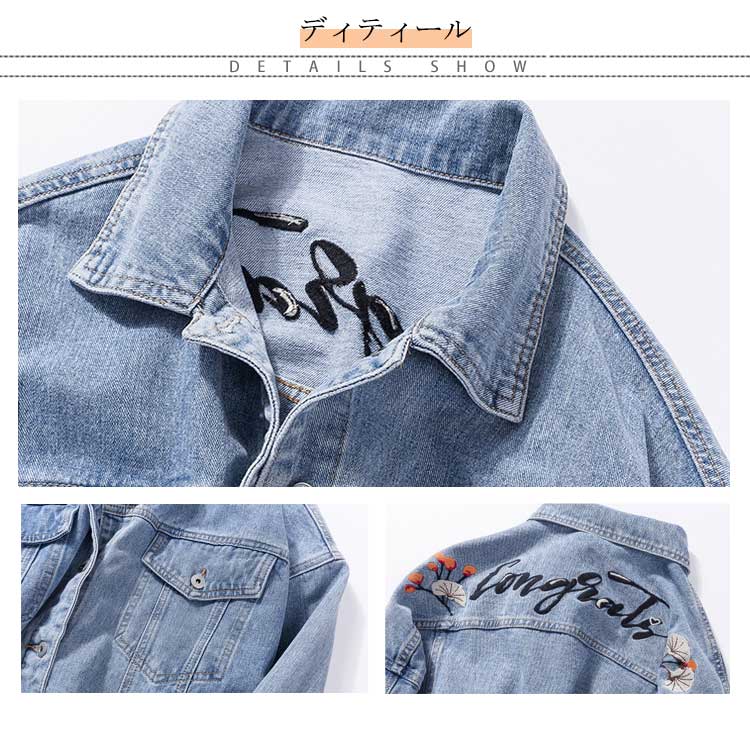 XL-5XLサイズ!バック刺繍入り デニム アウター Gジャン デニムジャケット レディース ジージャン 春ジャケット 大きサイズ 長袖 ベーシック コート 春 秋 刺繍 トレンド