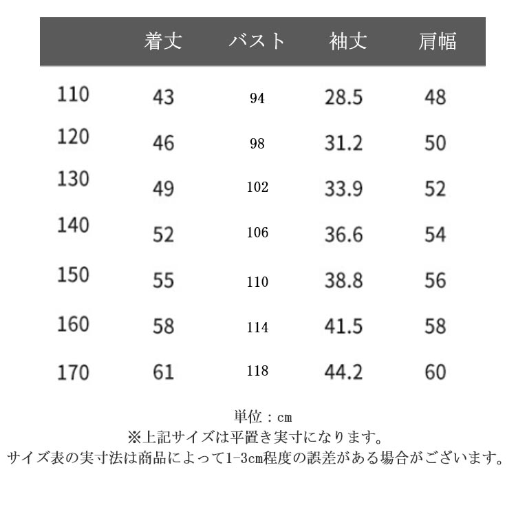 | サイズ | 110cm 120cm 130cm 140cm 150cm 160cm 170cm |