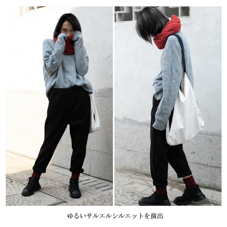 テーパードパンツ サルエルパンツ 秋冬 レディース メルトン テーパードパンツ 秋冬 起毛素材 ロングパンツ サルエル パンツ 9分丈 イージーパンツ ボトムス ナチュラル